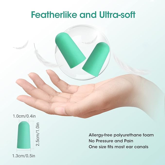 Safe & Comfortable Fit: Made from non-toxic PU foam with a tapered design for all-day comfort.
